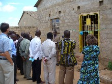 On the left, more pictures of the dedication service. On right, John with a class of students. |