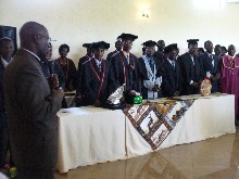 Assembly of God Bible College, the full-time training program of the Assemblies of God in Zambia, opened in January 2007.For the time being they are meeting at Kaunda Square Assembly. These pictures are of the dedication service. |